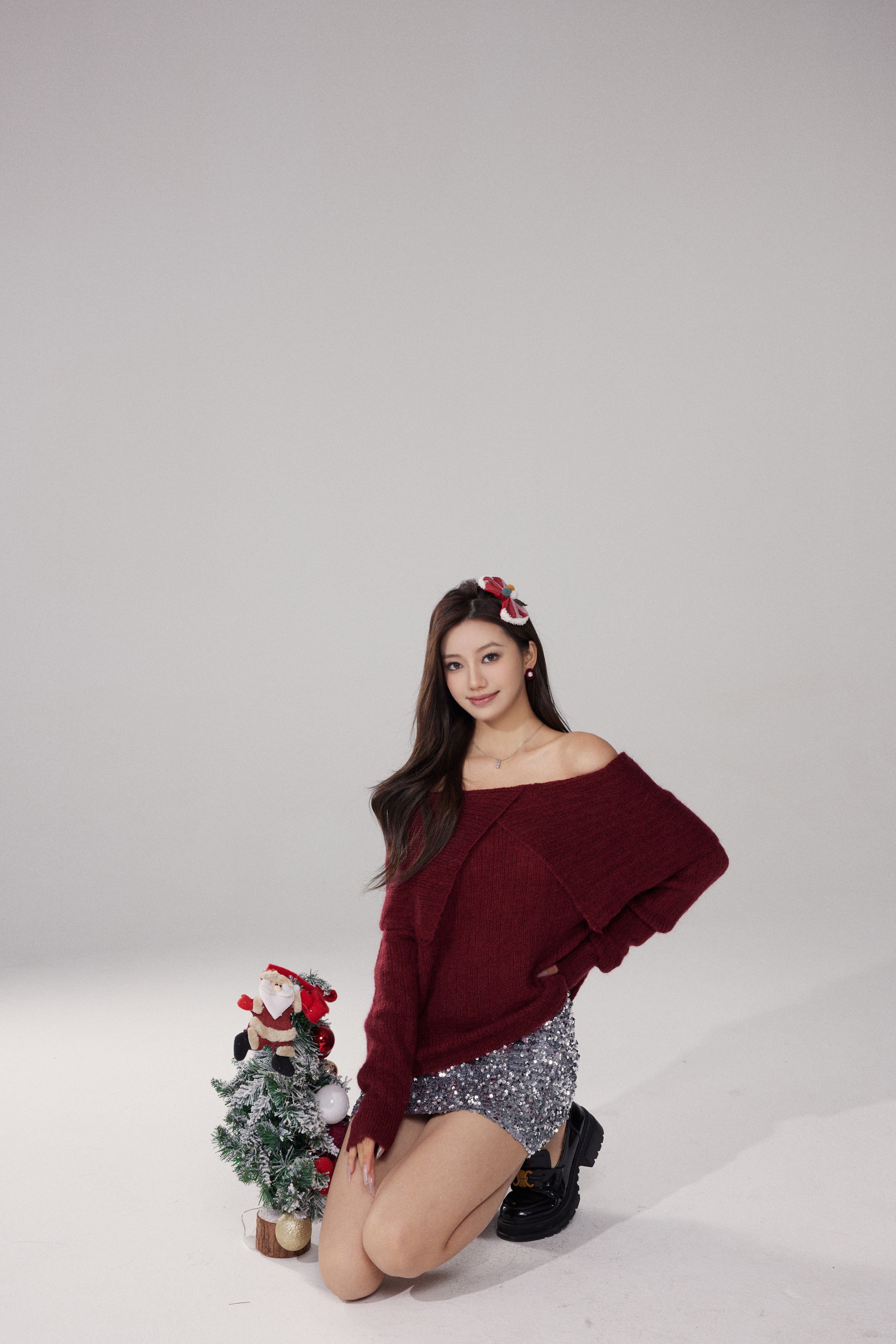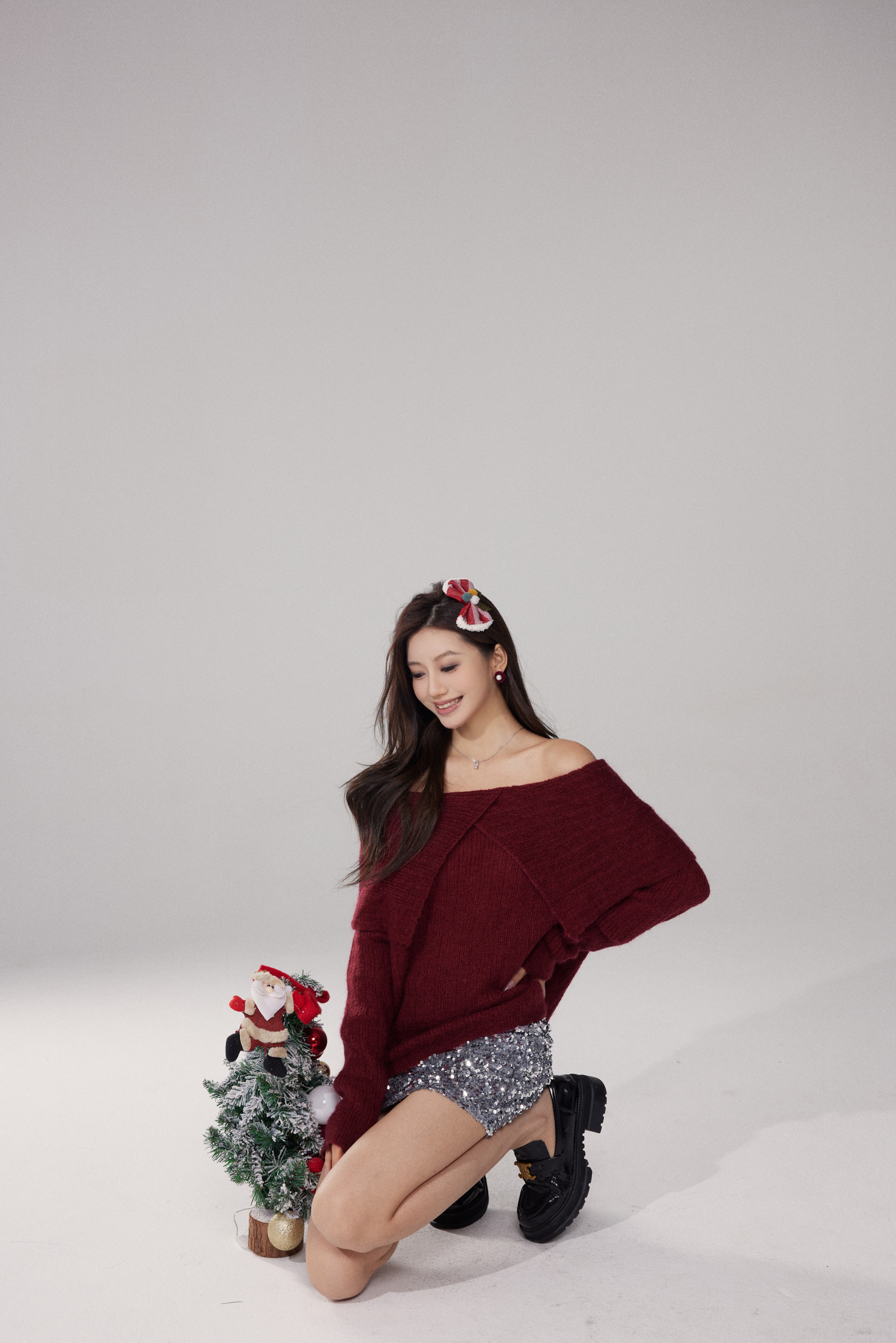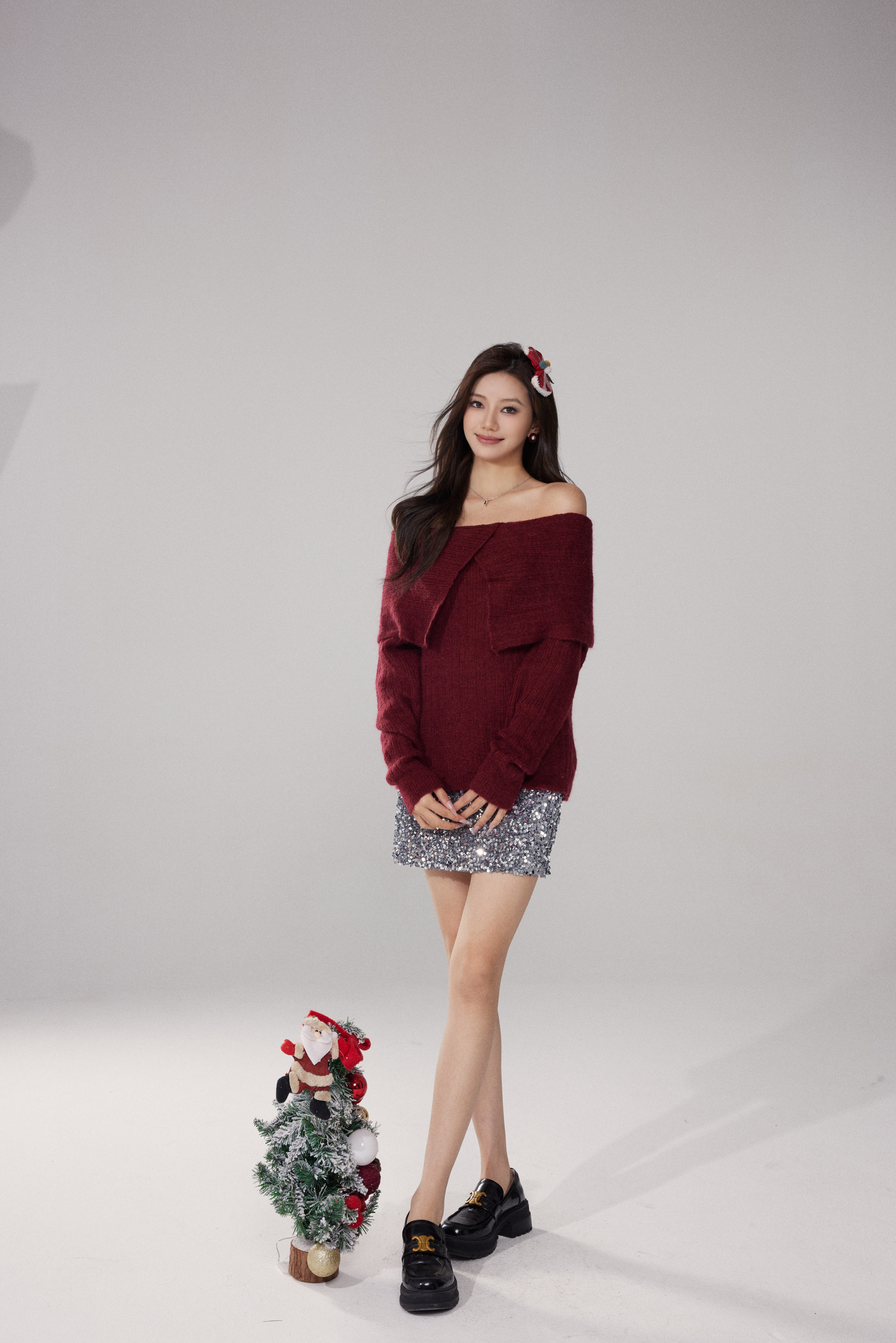 一字肩毛衣One Shoulder Sweater/亮片短裙Sequined Skirt