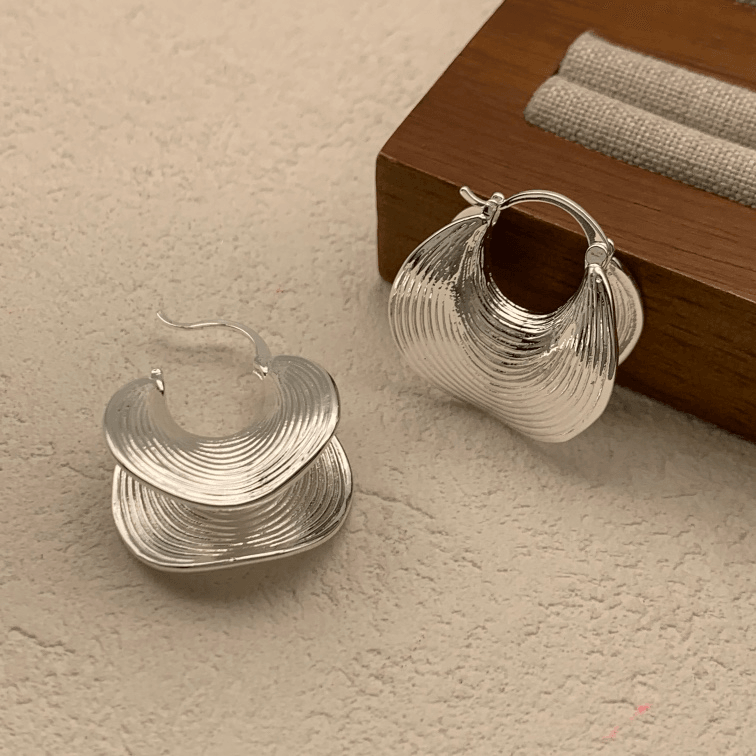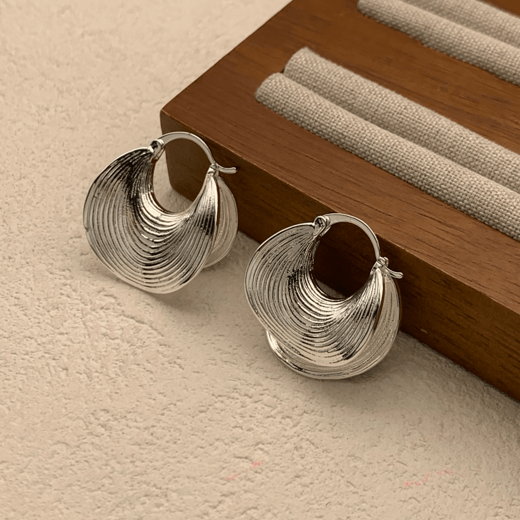 复古螺旋纹廓形耳环Silver Earrings
