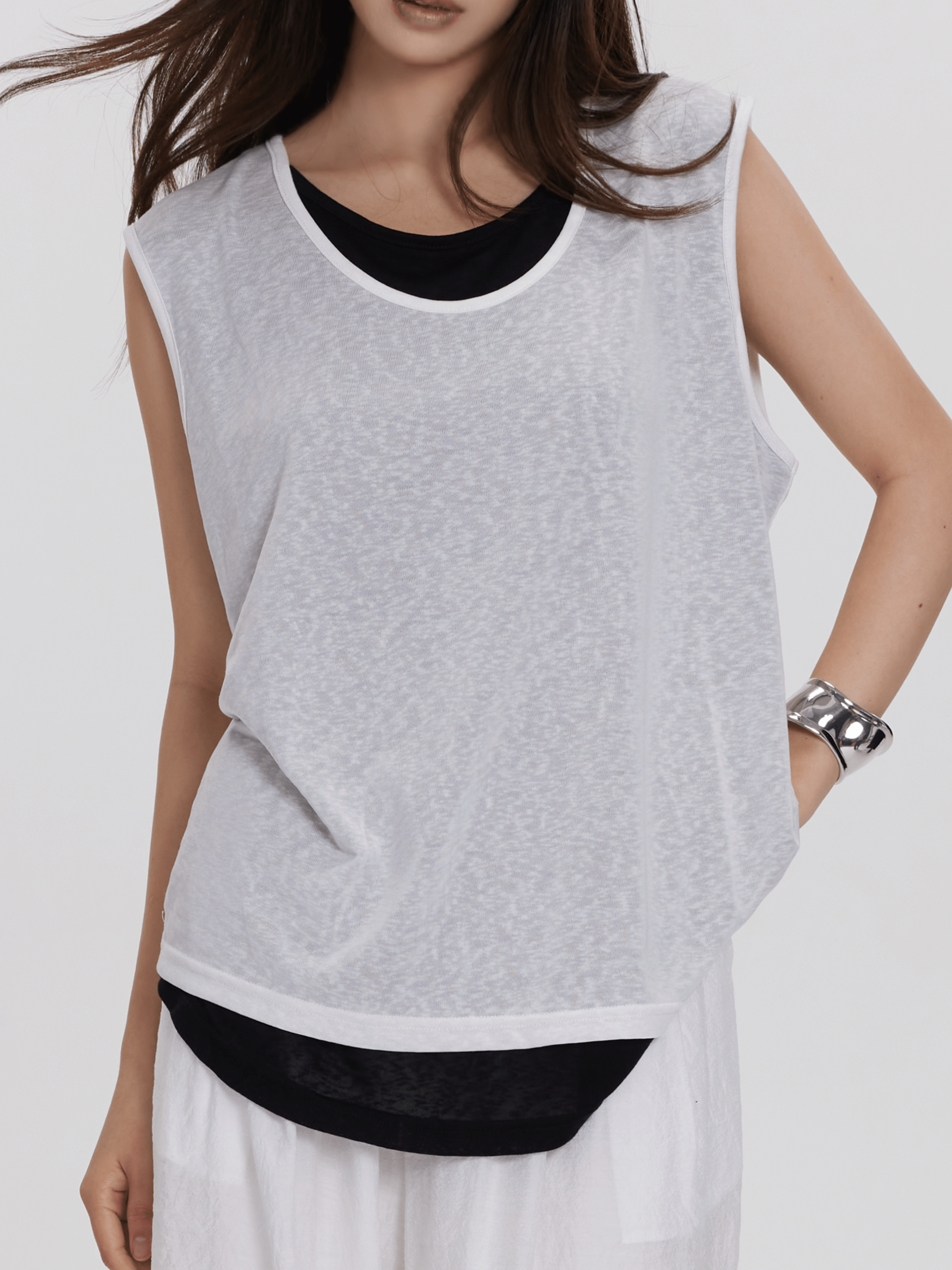 长期慵懒主义的假两件背心 很有韩范的叠穿感 假两件增加层次 松弛展露无疑 整体微宽松适度有佳 高级ins风即可驾驭