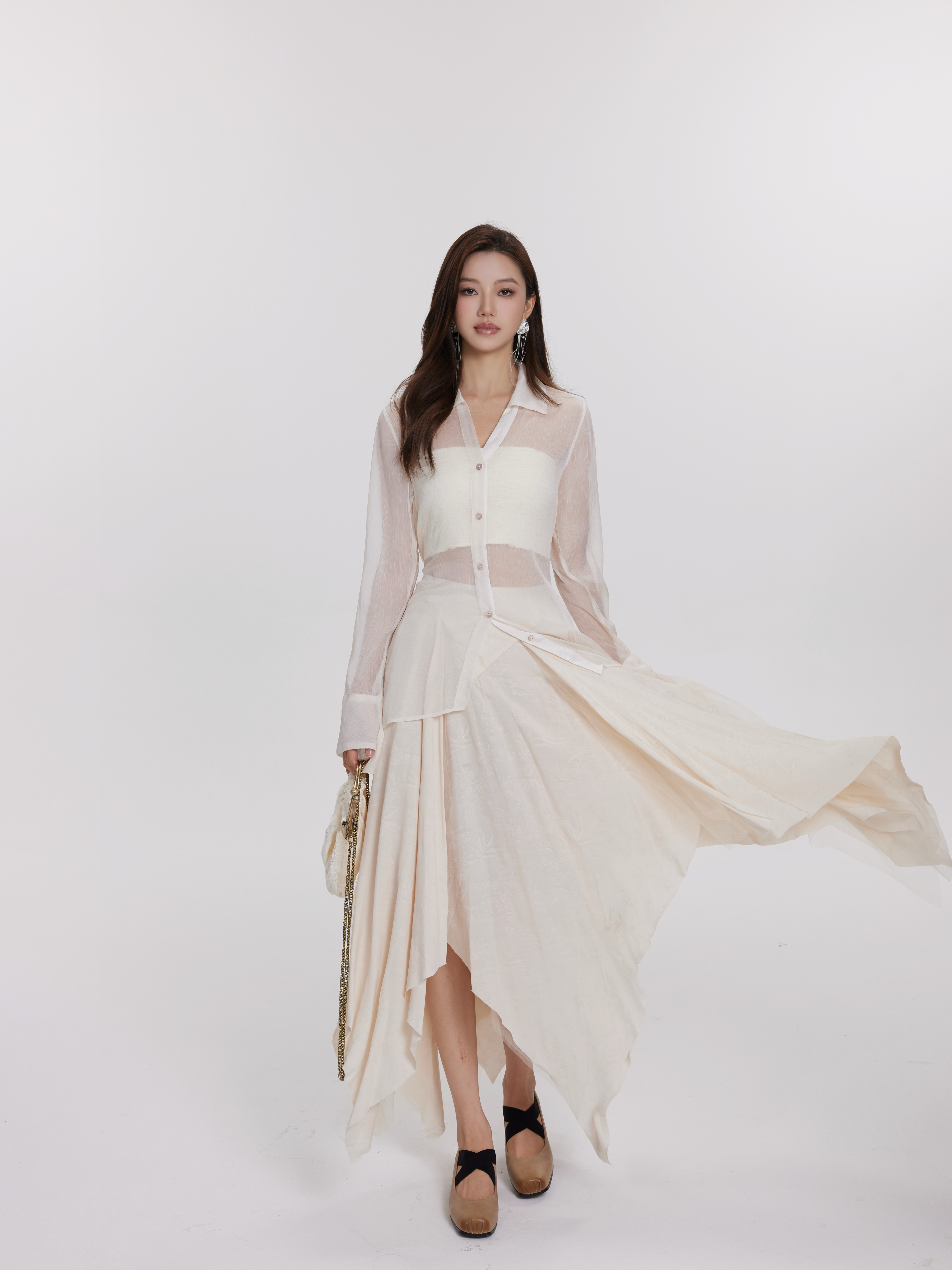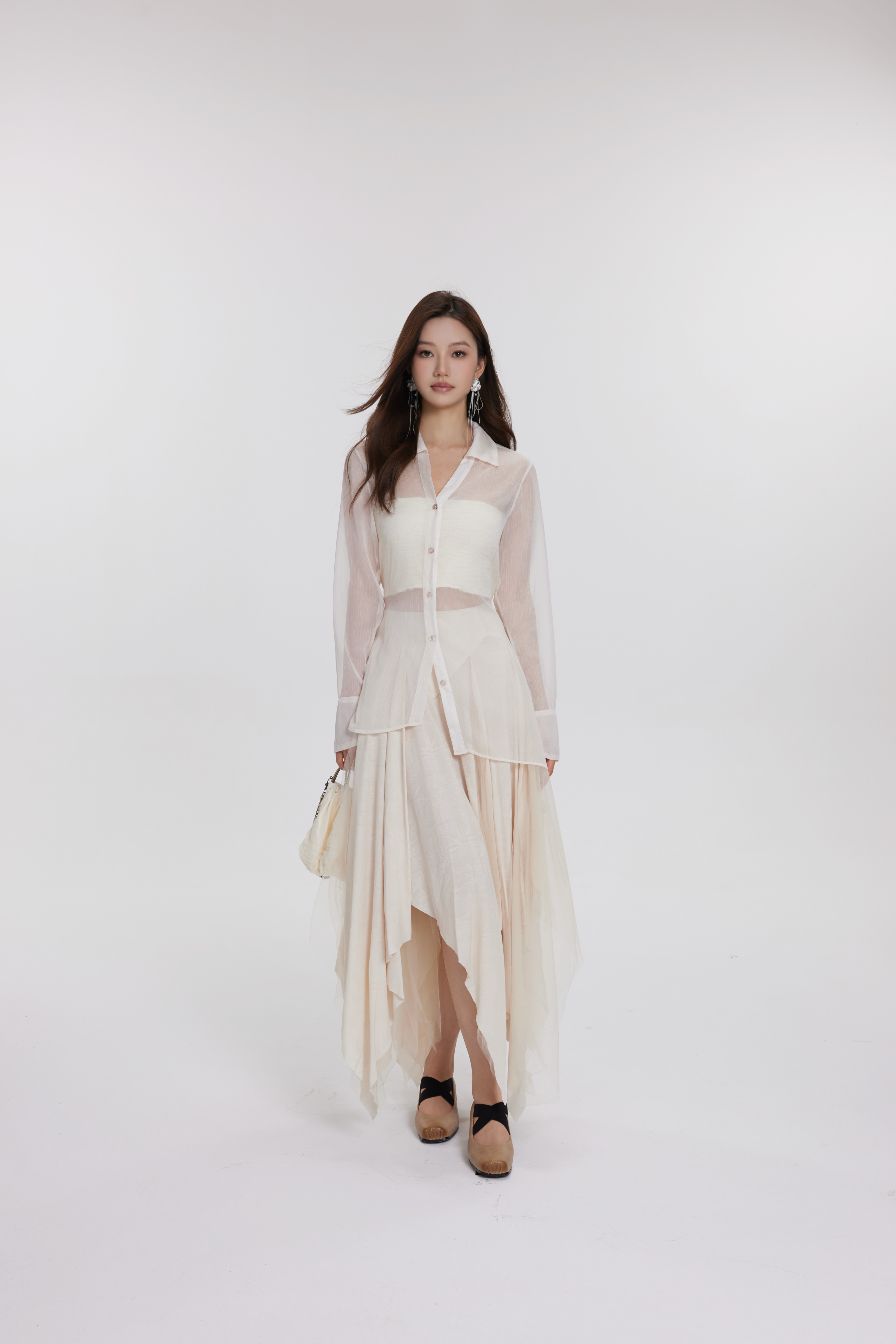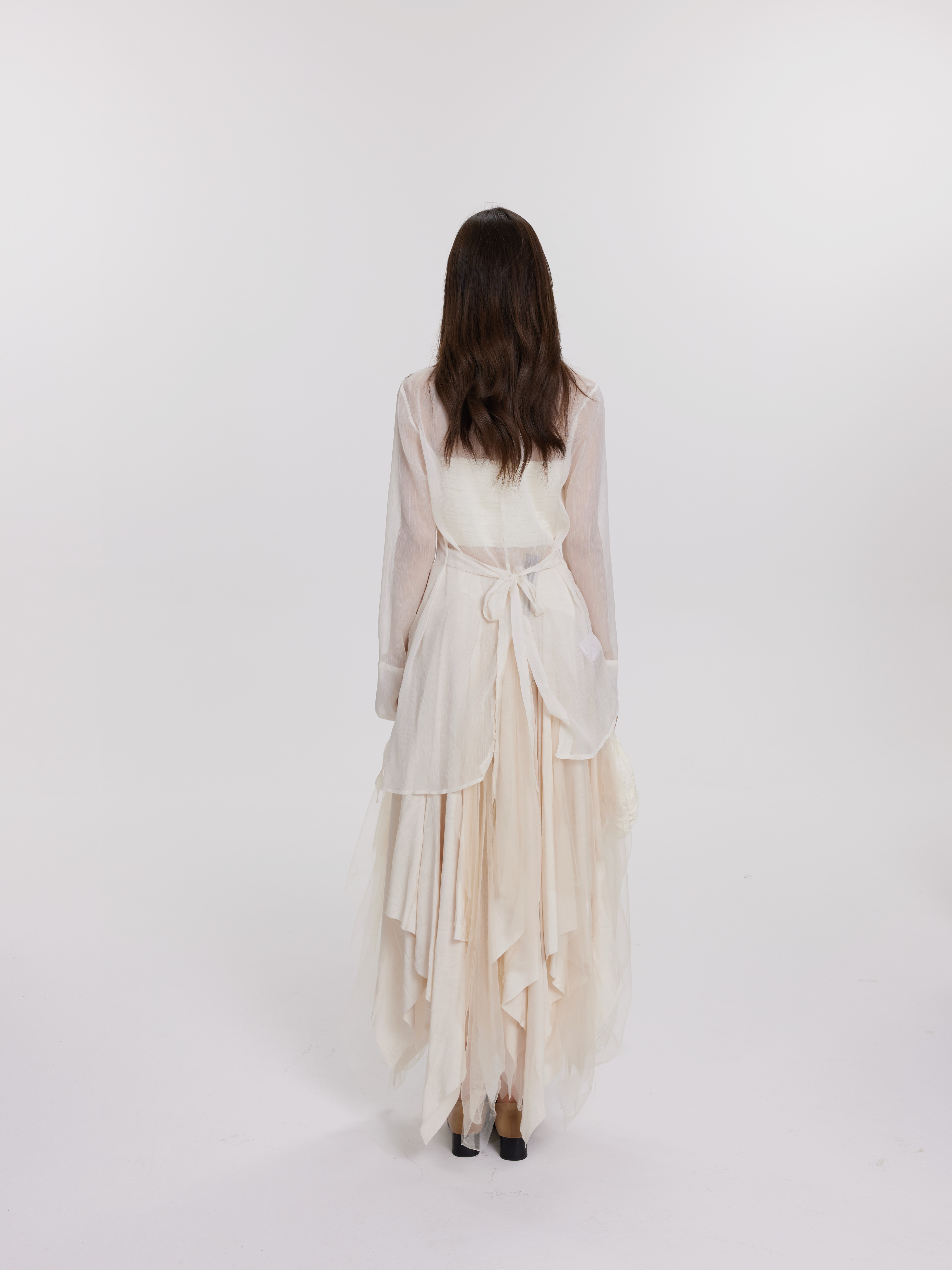 雪纺肌理衬衫Chiffon Shirt/叠层拼接网纱裙Hemp Patchwork Skirt