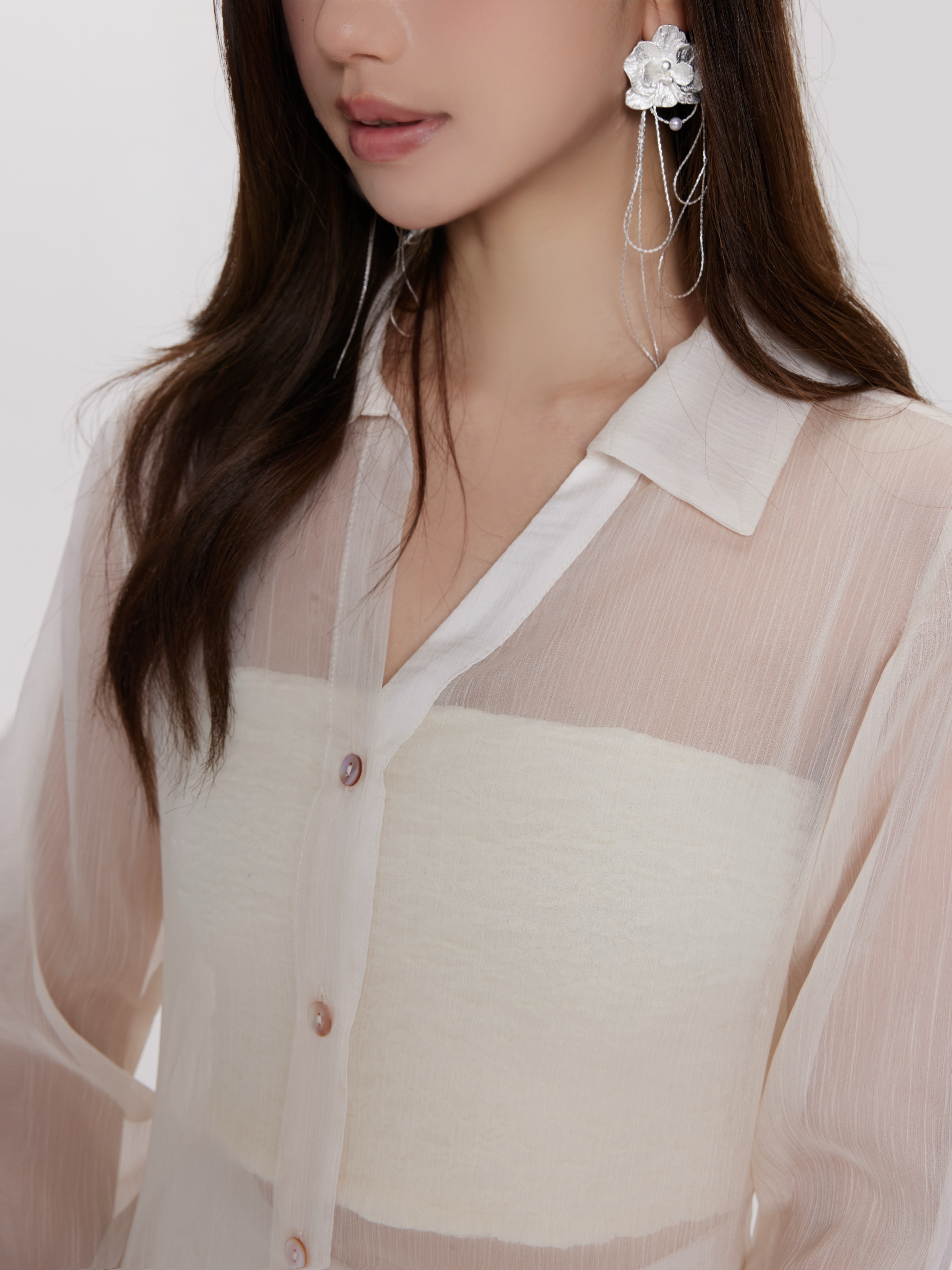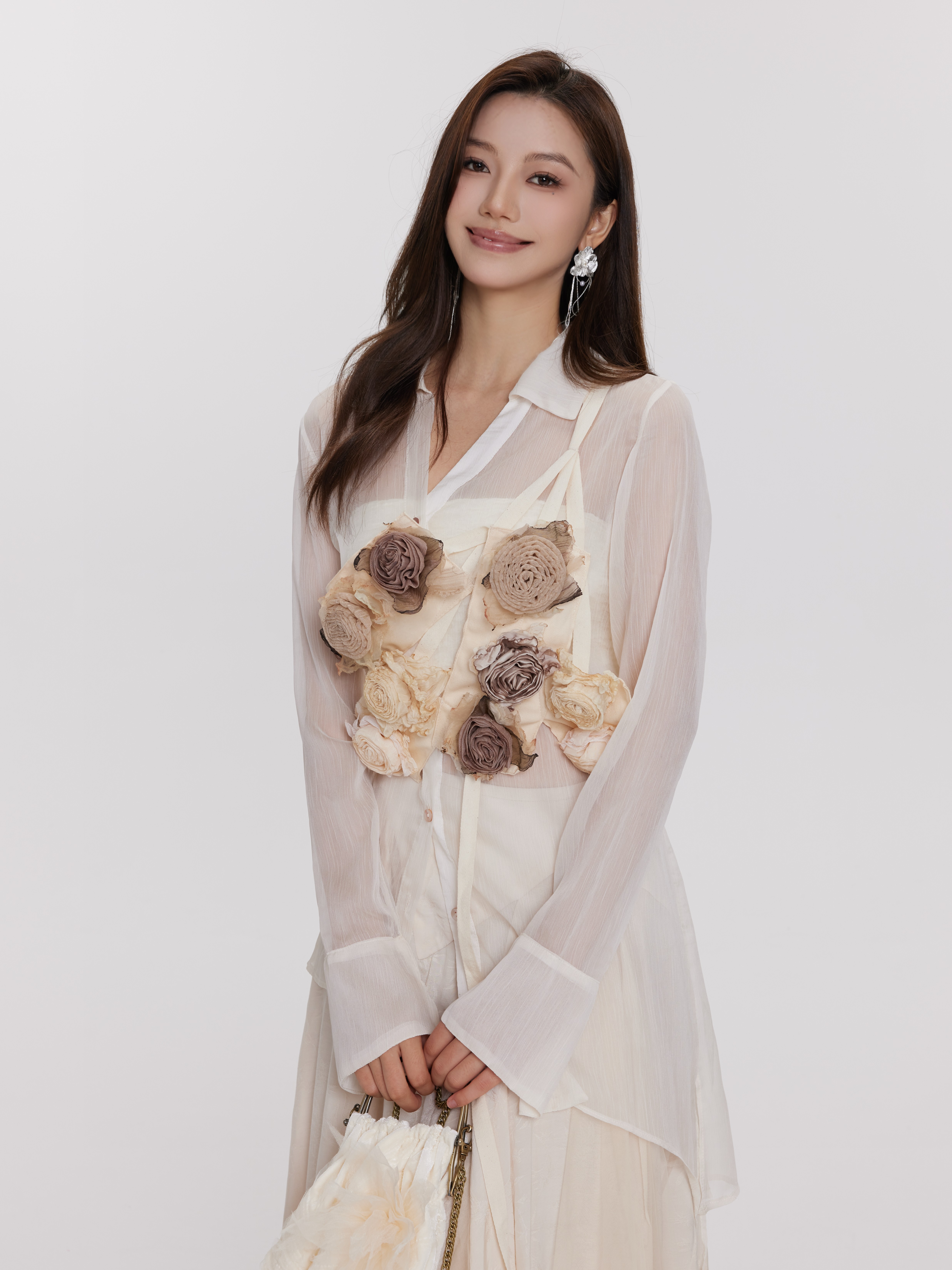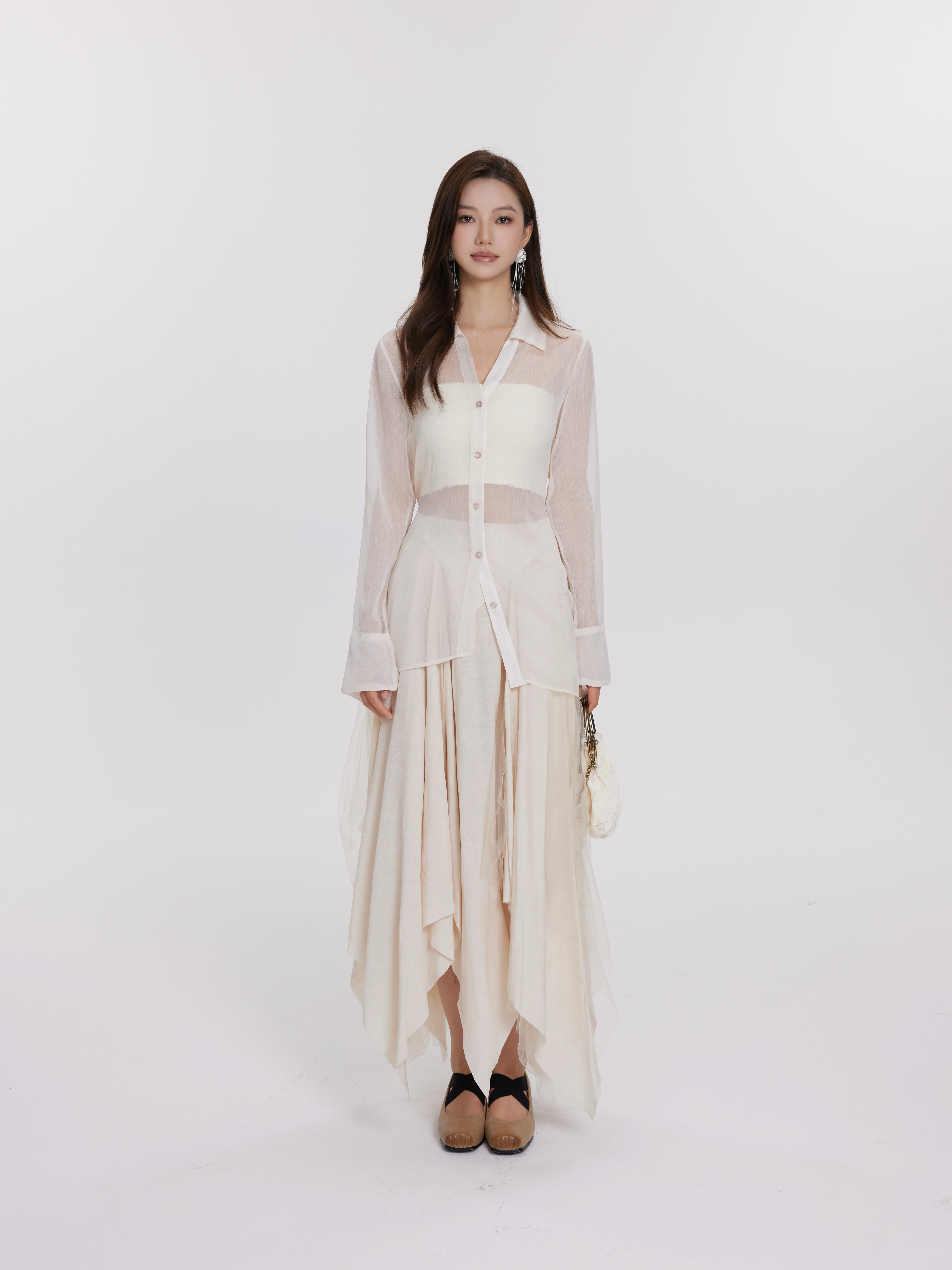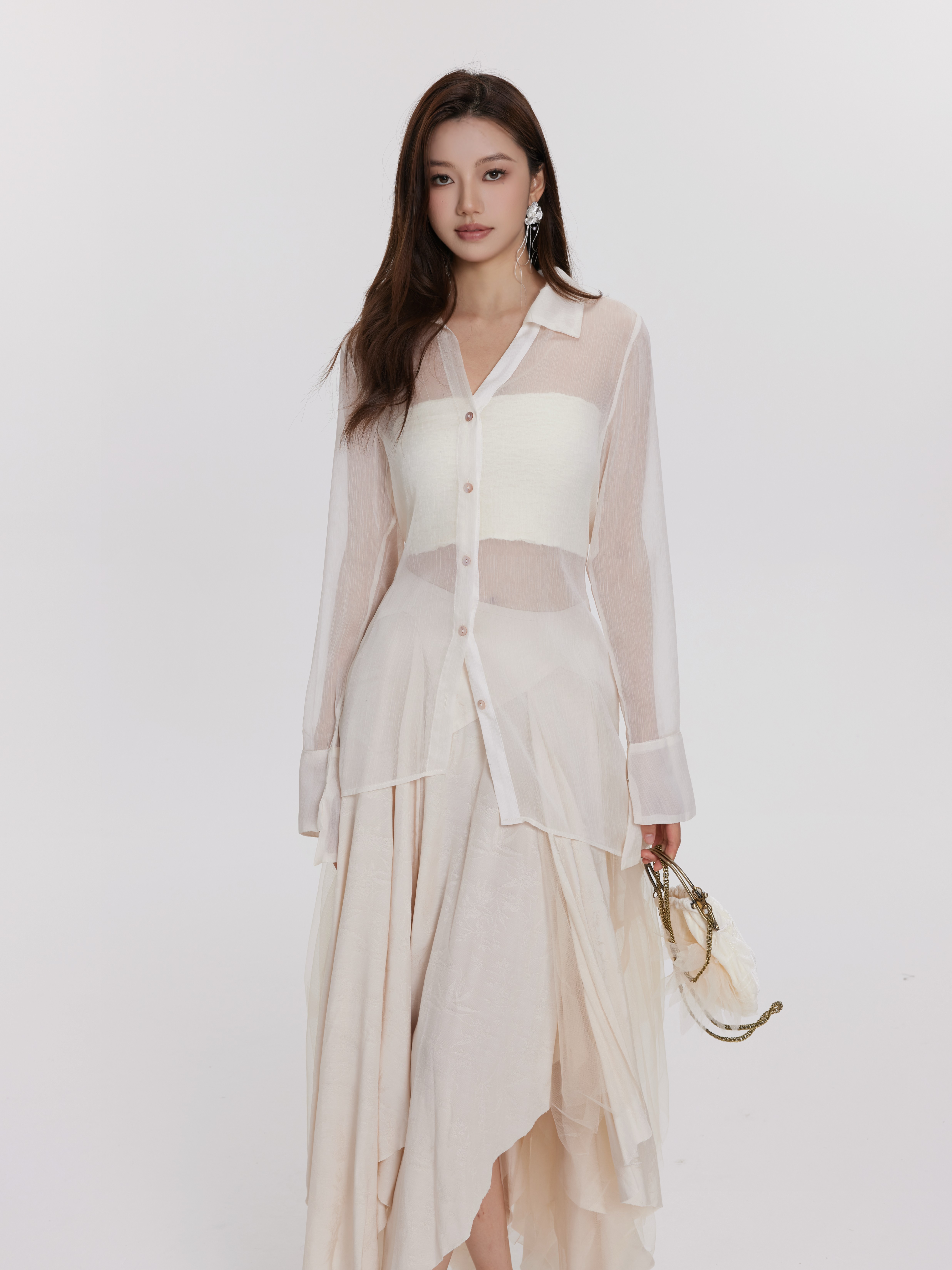 雪纺肌理衬衫Chiffon Shirt/叠层拼接网纱裙Hemp Patchwork Skirt