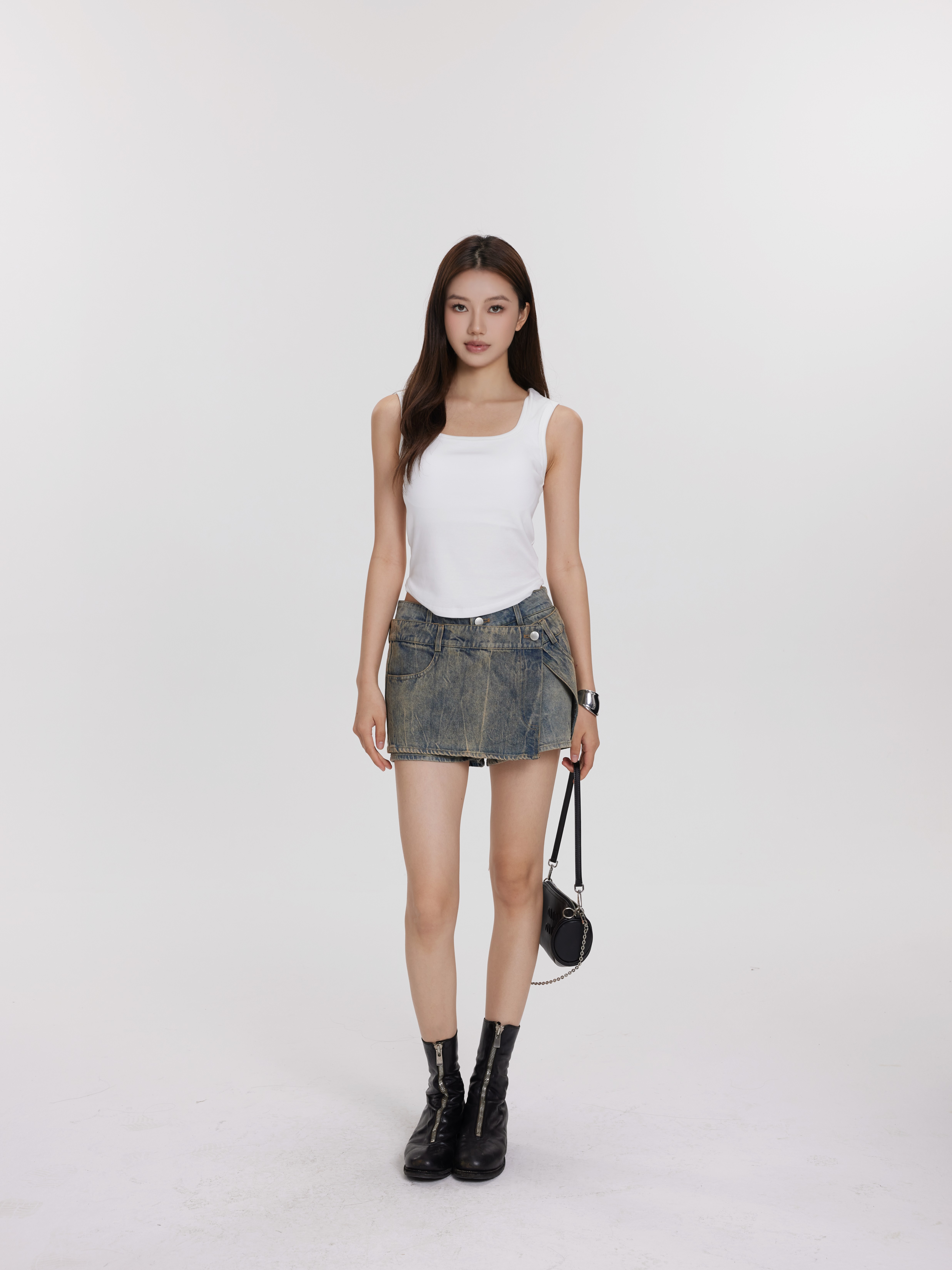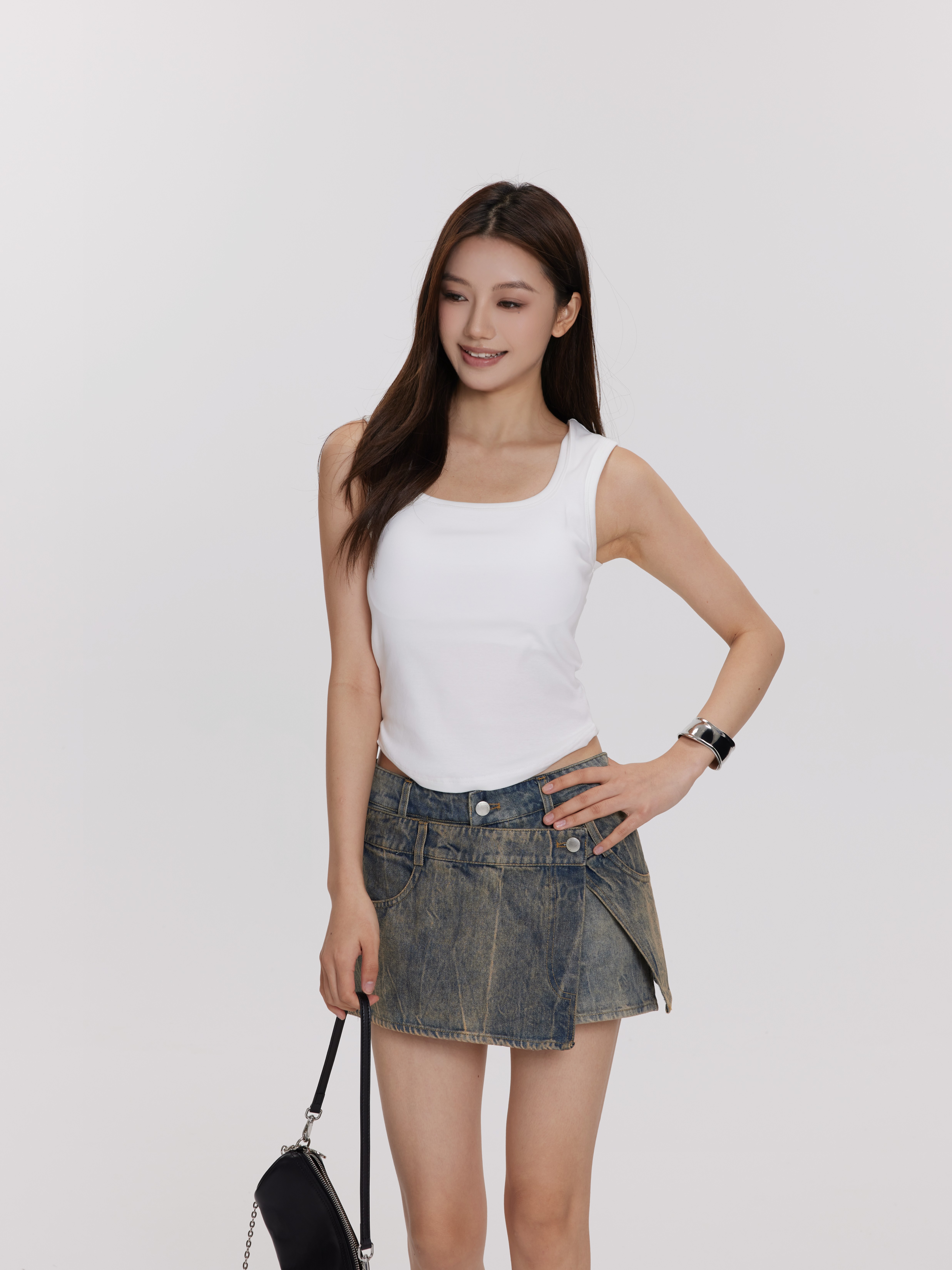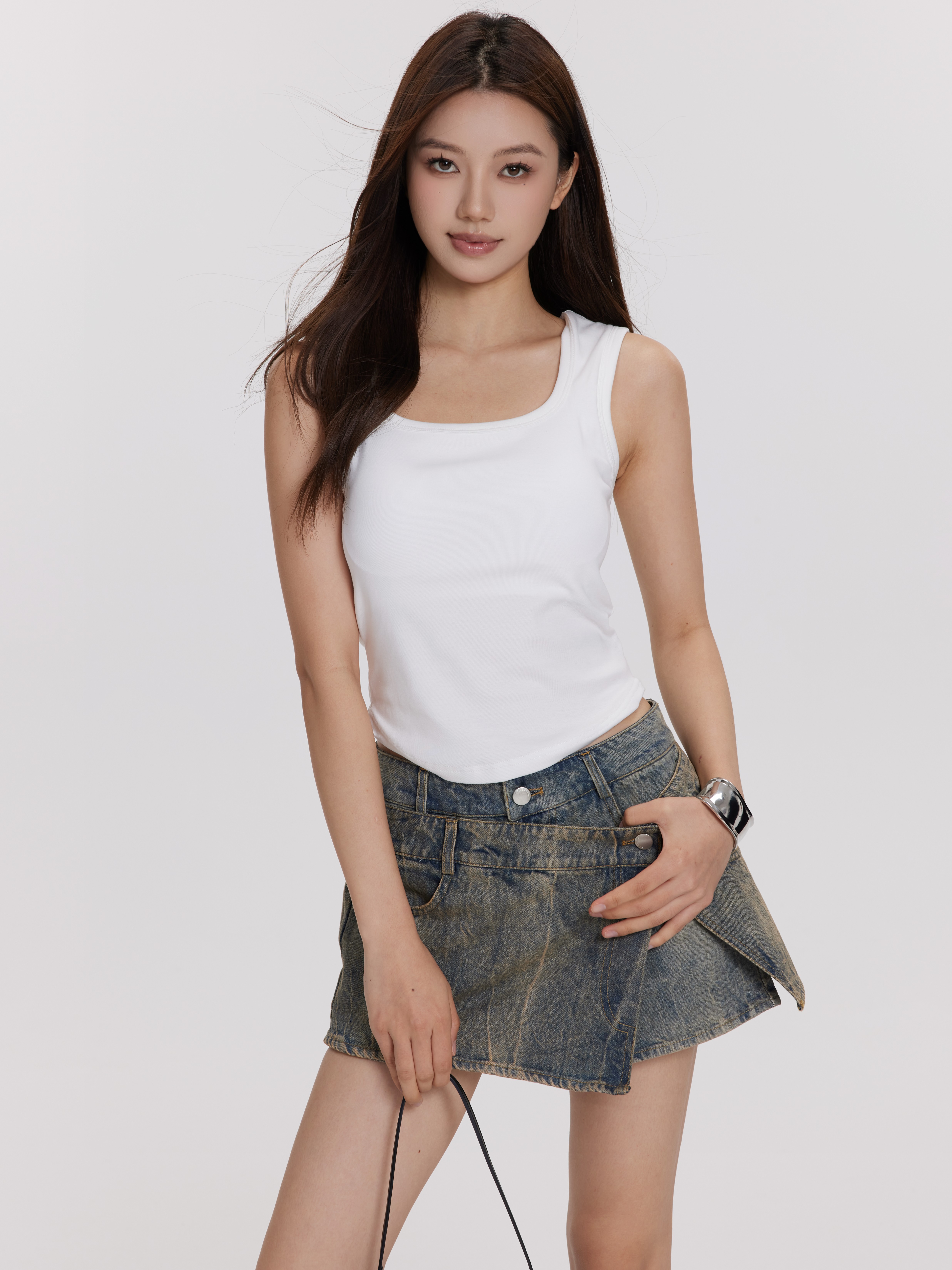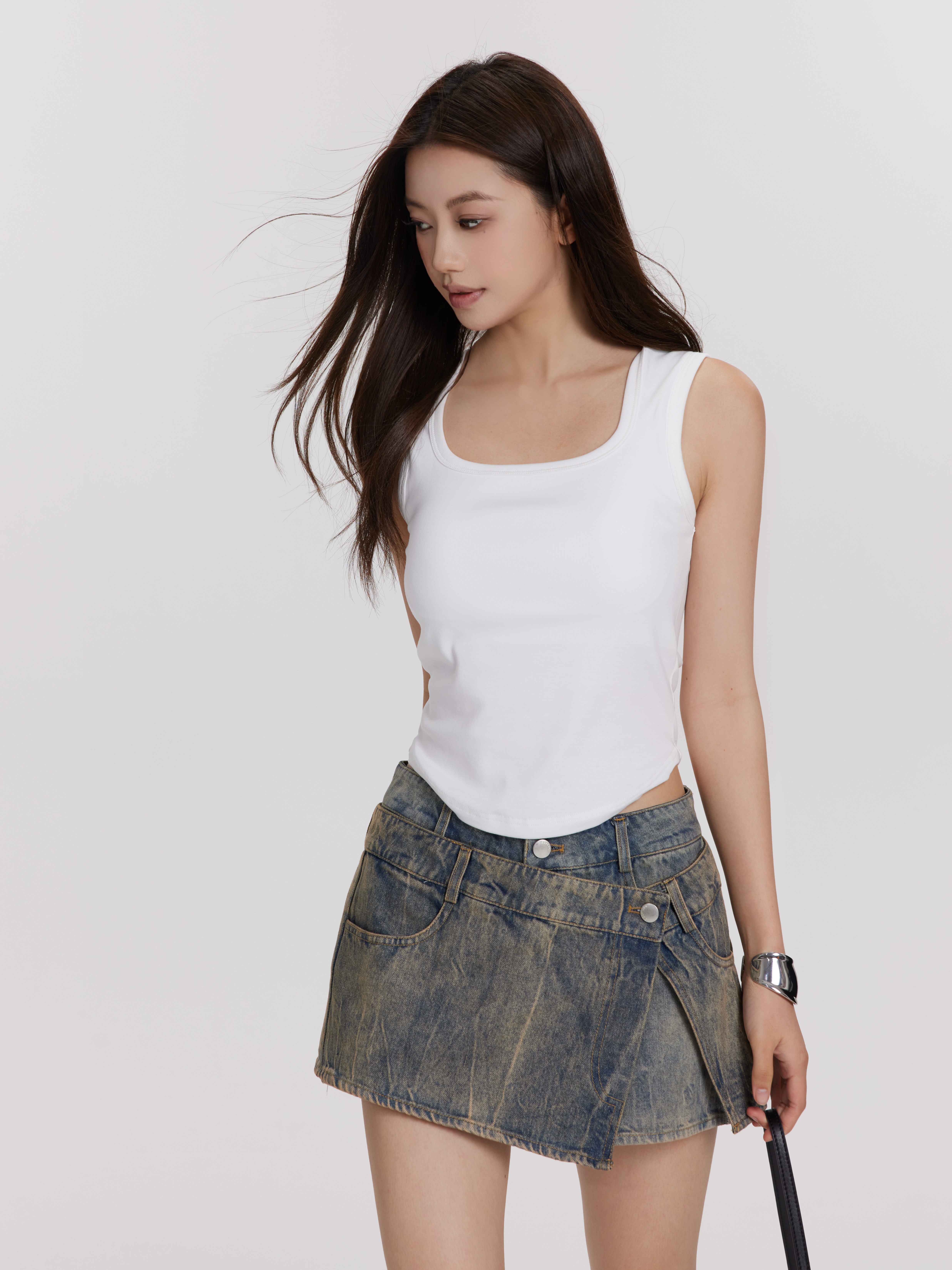 百搭胸垫背心Padded Undershirt/不规则牛仔裙裤Denim skirt