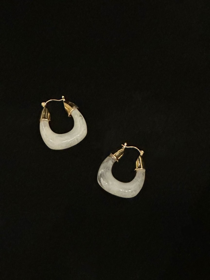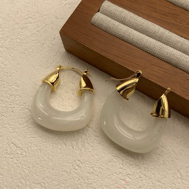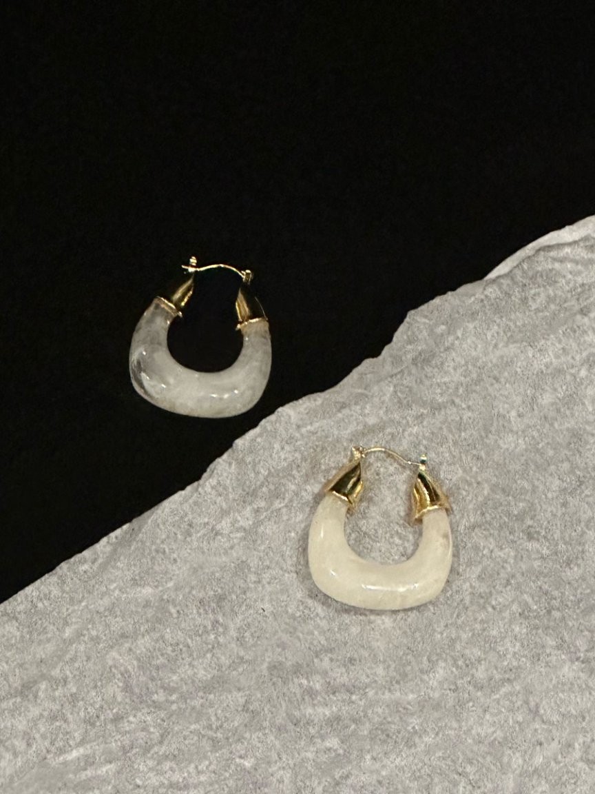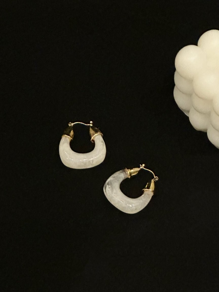法式几何型耳环白色Metal Earrings