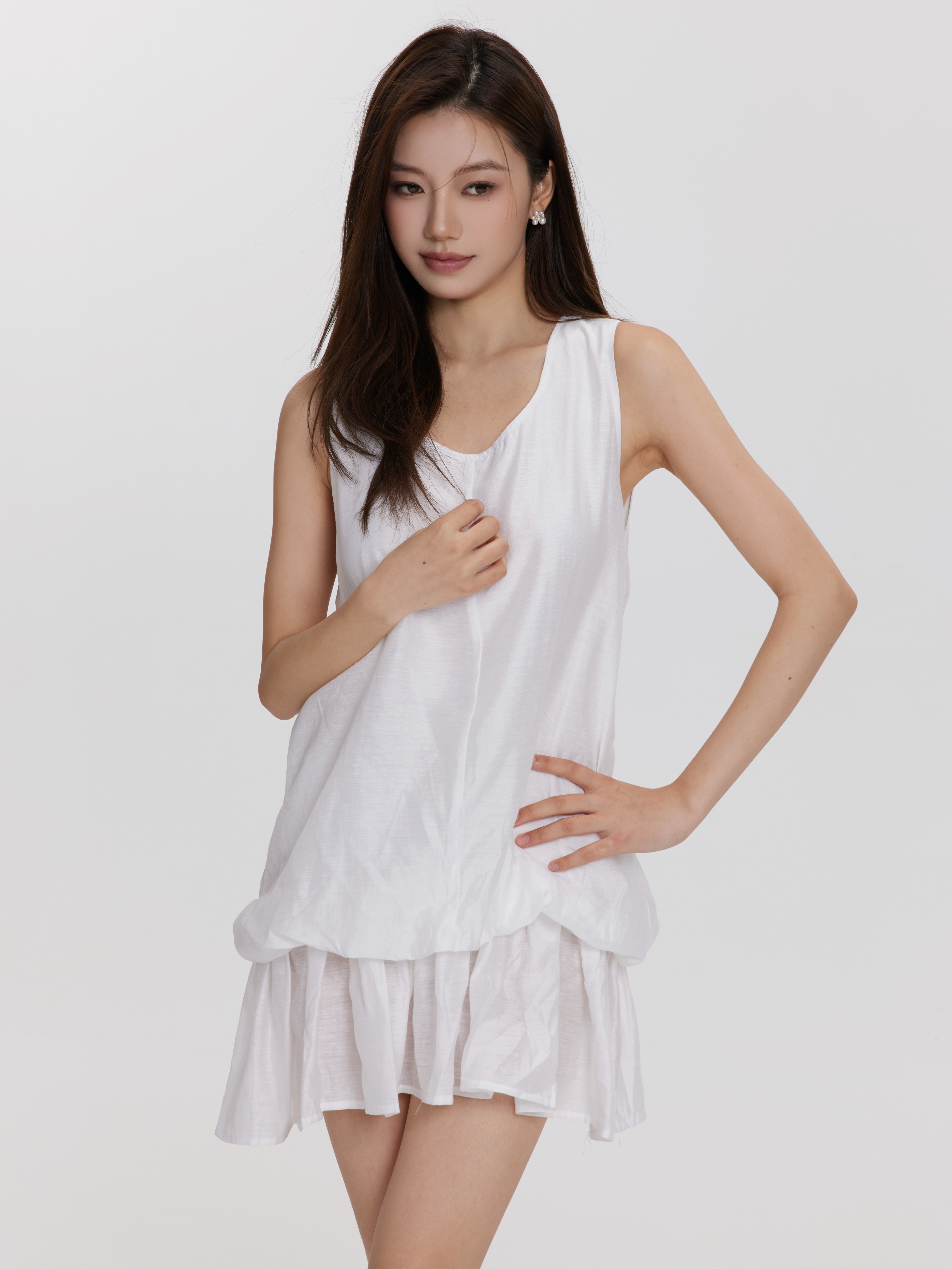 俏皮感云朵连衣裙 裙摆结合花苞设计 廓形张弛有度 精致小众 又带点鬼马精灵的青春感 棉质面料挺括有质感 轻盈有空气感 舒适着装又有小俏皮的一条裙子